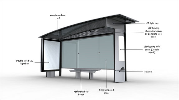 Customized intelligent aluminum profile bus station bus shelter billboard light box bus station